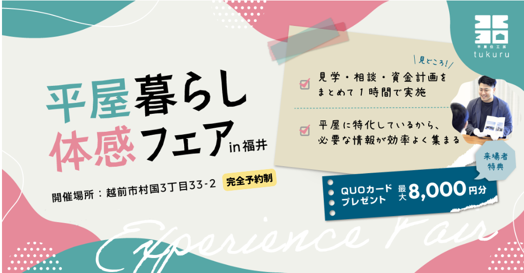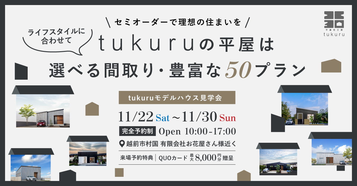 「tukuru」についてのお問い合わせ、カタログ請求、無料相談会、モデルハウス見学はこちらから。